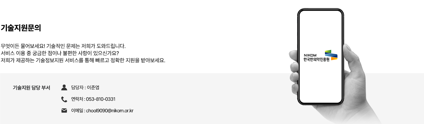 한의약 소재은행은 한의소재의 개발과 분양을 지원합니다