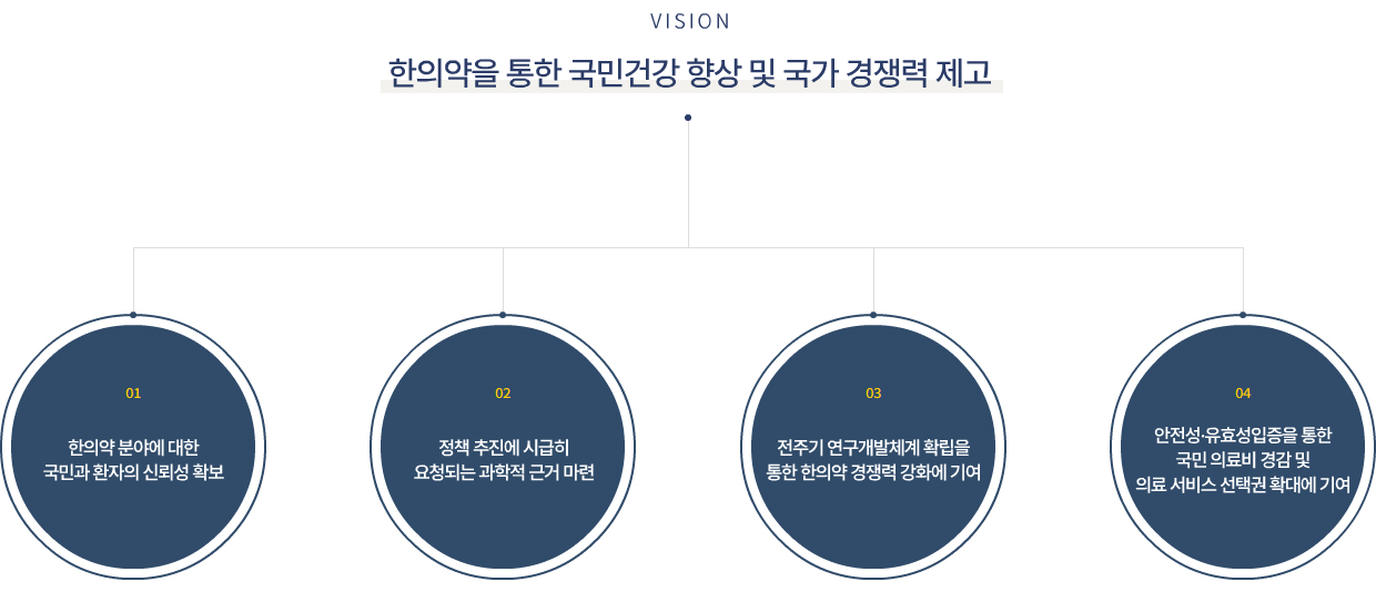 • 비전 : 근거 중심 한의약 의료서비스의 표준화·과학화를 통한 한의의료서비스 품질 제고 및 국민수요 확대